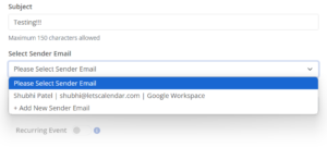 2. Create “New campaign” and “select Sender Email” to enable “Recurring Event”.